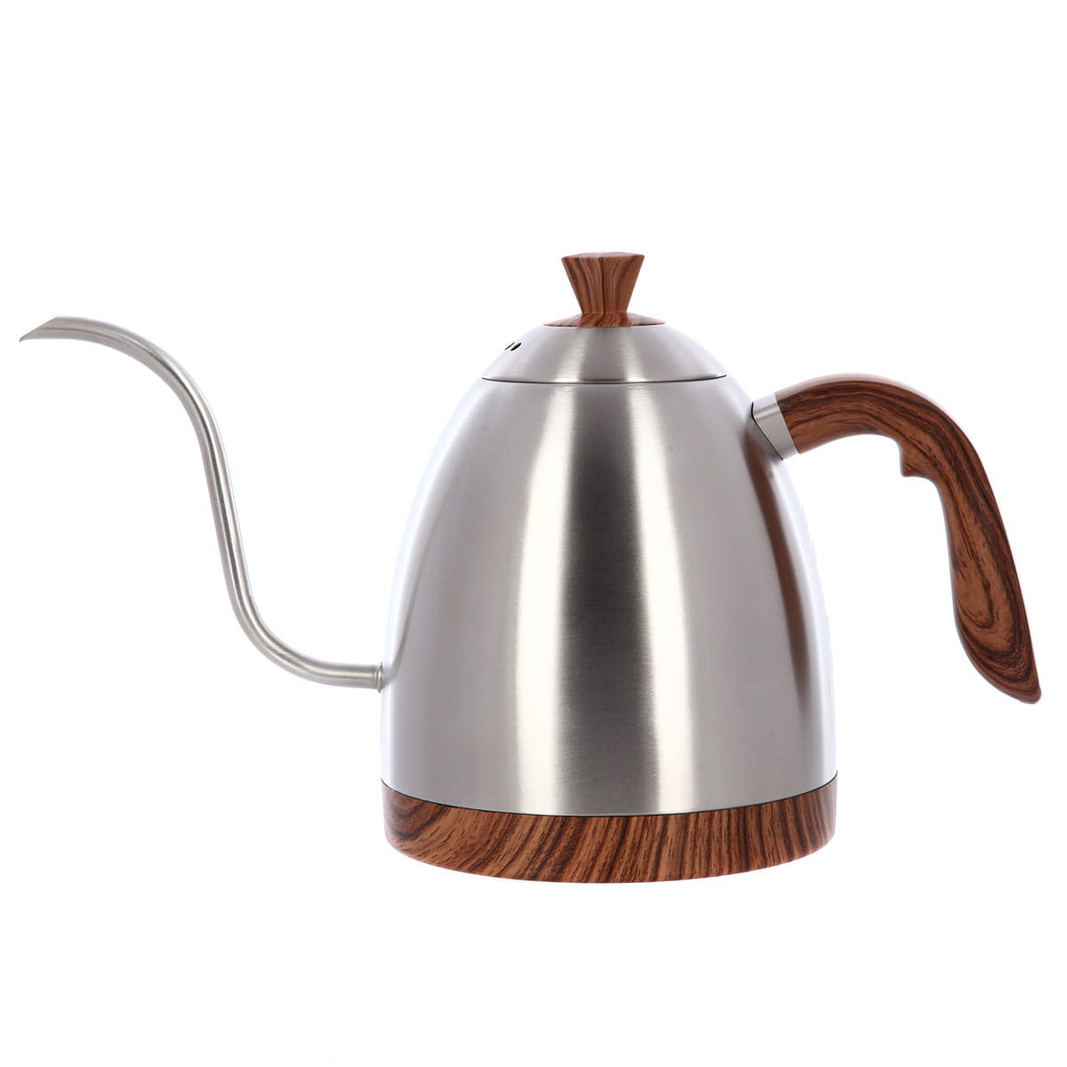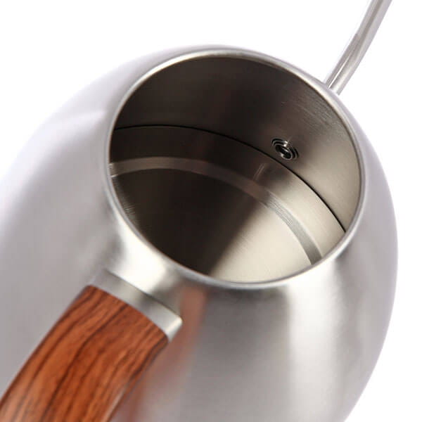 Стальной чайник c длинным тонким носиком для заваривания кофе незаменимый компаньон кофейных ритуалов. Чайник используется при приготовлении кофе способом Пуровер. Изготовлен из нержавеющей стали. Длинный тонкий носик предназначен для формирования тонкого ровного потока воды, что является обязательным условием для приготовления идеального кофе, заваренного через фильтр. Длинный и узкий носик позволяет обеспечить полный контроль потока горячей воды. С его помощью, вы получаете цельную и ламинарную струю, максимально-возможной плотности и толщины, приемлемой для заваривания кофе в пуровере.