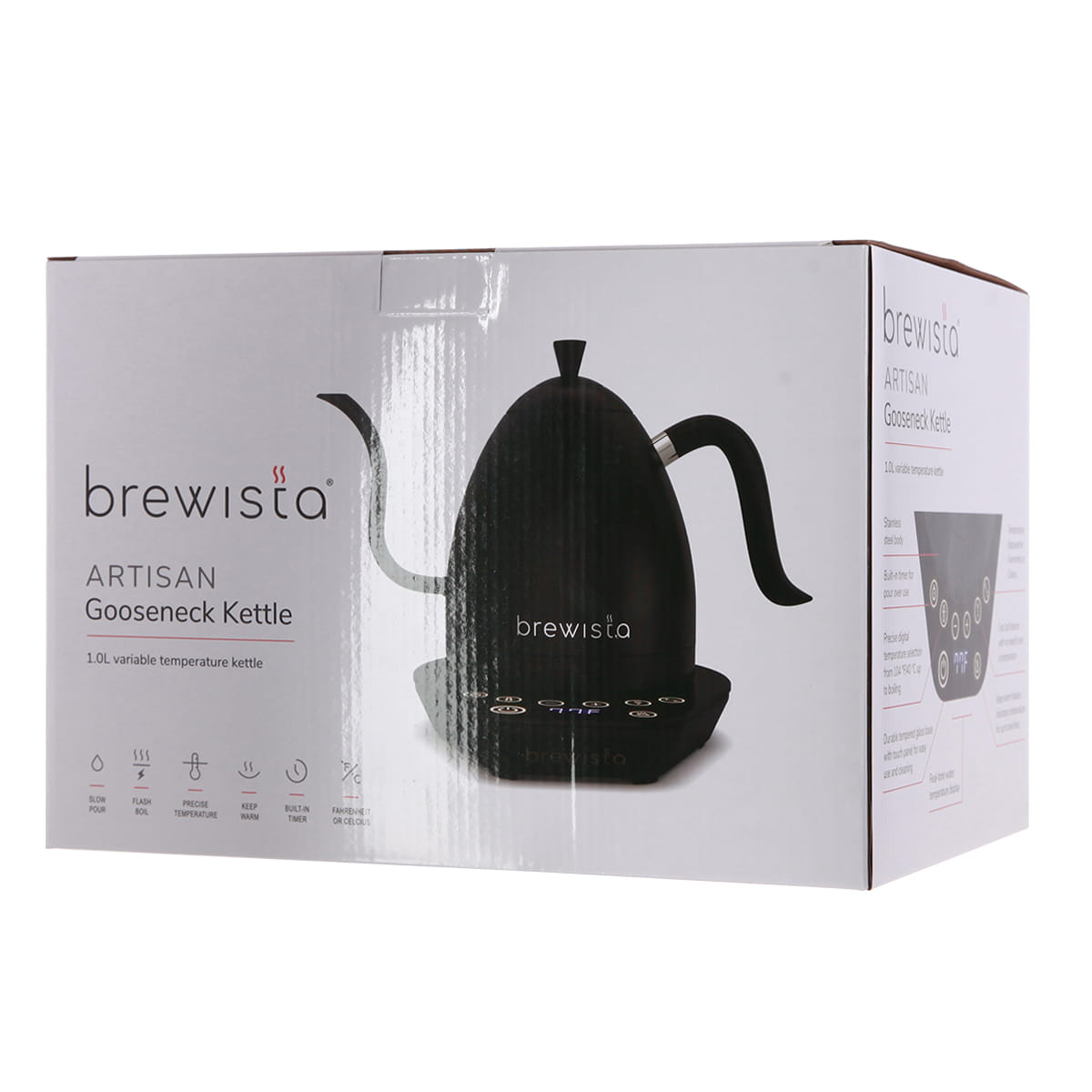 Brewista Artisan Variable Kettle (BA10VKVDE-BB) – цифровой электрический чайник на 1 л, c функциями точного контроля температуры, мгновенное кипячение, удержание тепла, который позволит вам приготовить самый лучший кофе. Он сочетает в себе функциональность и необычный дизайн.