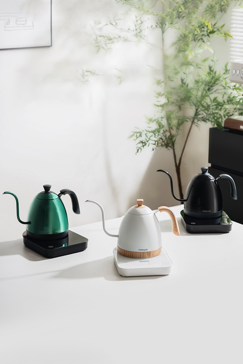 Интеллектуальный чайник Maxwin с контролем температуры для ручного заваривания кофе изготовлен из прочной нержавеющей стали и оснащен технологией точного контроля температуры.