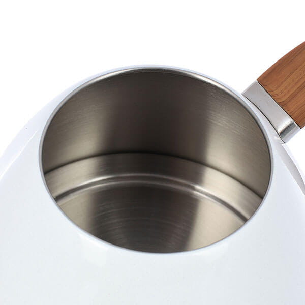 Материал:Ручка крышки и ручка: обработанная смола Крышка и носик: нержавеющая сталь с белой краской Корпус чайника: нержавеющая сталь белой краской