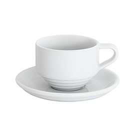 Белый цвет подчёркивает чистоту формы и аккуратную глазурь, обеспечивая ровный и однородный оттенок. Запатентованное четырёхступенчатое основание обеспечивает надёжную стекуемость чашек разных объёмов, экономя пространство на кофейной станции. Кофейная пара комплектуется блюдцем диаметром 13 см и полностью совместима с другими элементами коллекции Deco.