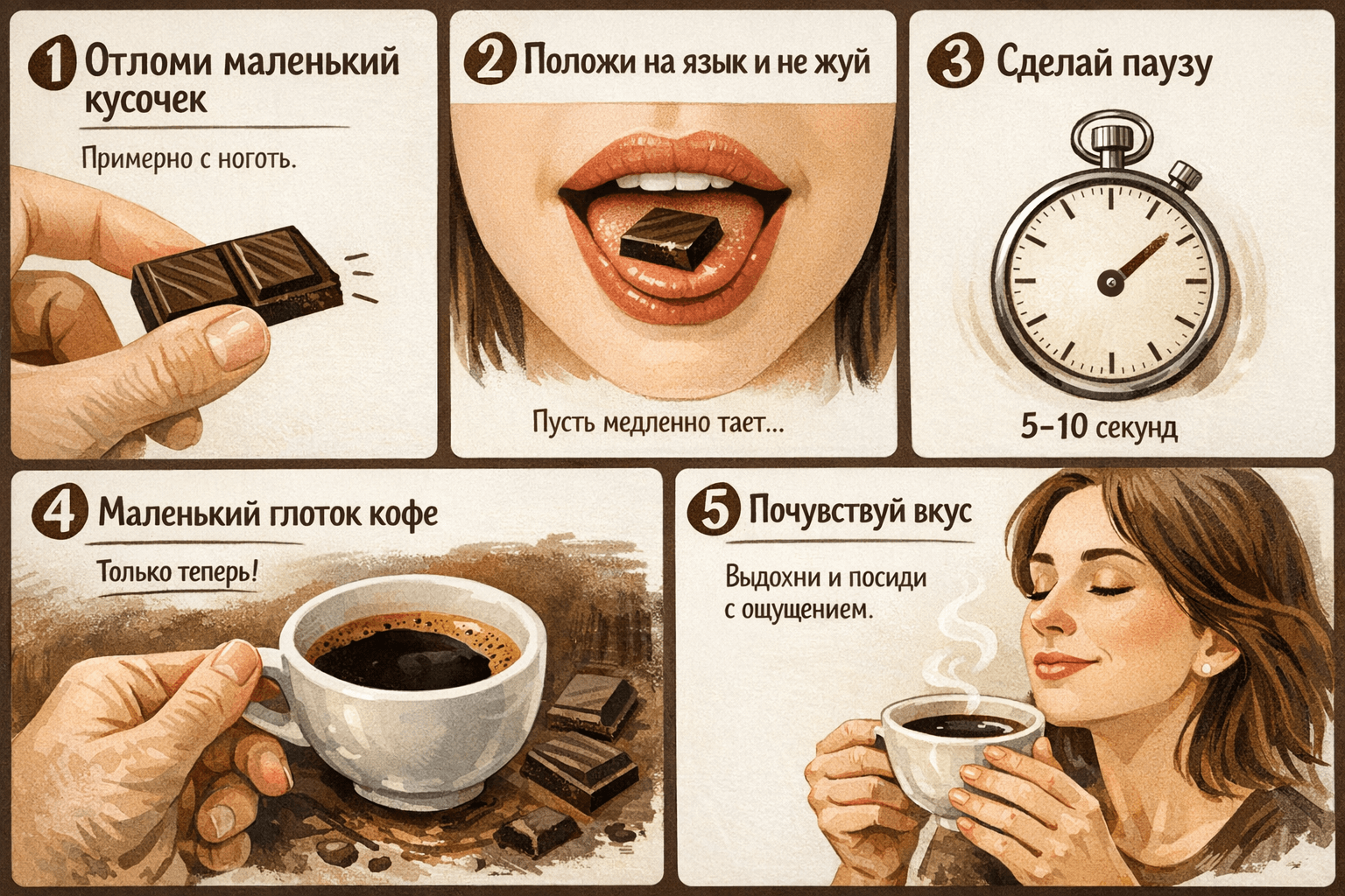 - 3. Сделай паузу (5–10 секунд) Это важно. Вкус «раскрывается».
