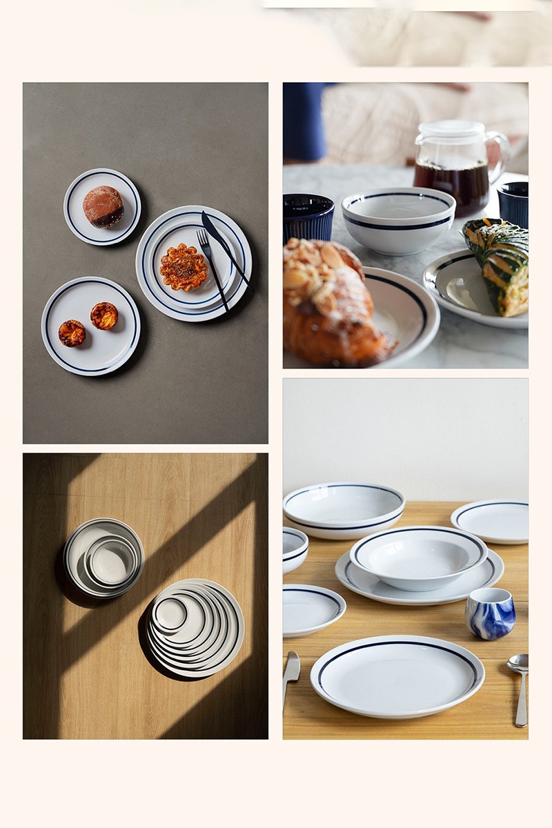 Коллекция Er-go! Modern Diner вдохновлена эстетикой ретро-кафе, переосмысленной в современном ключе. Характерная синяя кайма, нанесённая вручную, придаёт каждой тарелке уникальность. Гладкая глазурованная поверхность подчёркивает натуральную текстуру керамики, а лаконичная форма гармонично сочетается с различными стилями сервировки.